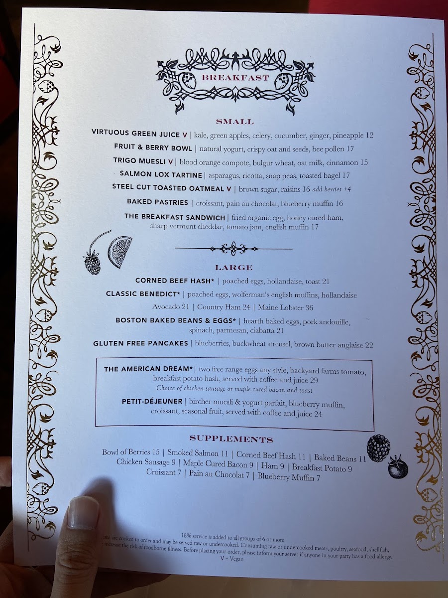 bircher muesli & yogurt parfait, croissant, seasonal fruit, served with coffee and juice